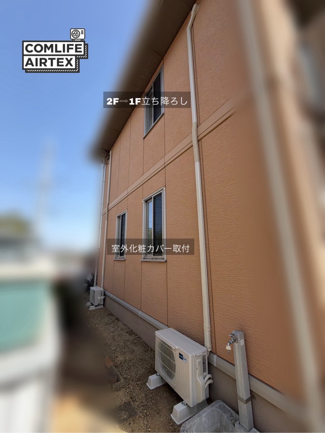 穴あけ・2F→1F立ち降ろし作業で、室外カバーを取り付けて完了です🙆