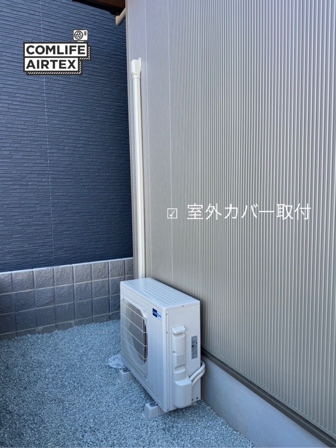 Works 施工事例 2025年10月21日 新規取付 MITSUBISHI 5.6kw 新規取り付け👨🏻🔧 MITSUBISHI 5.6kw 新規取り付け👨🏻🔧 外壁ガルバリウム穴あけ工事からの施工です💪 室外カバーはアイボリーを取り付けさせていただきました😊 📷施主様より掲載許可頂いております 事例紹介一覧