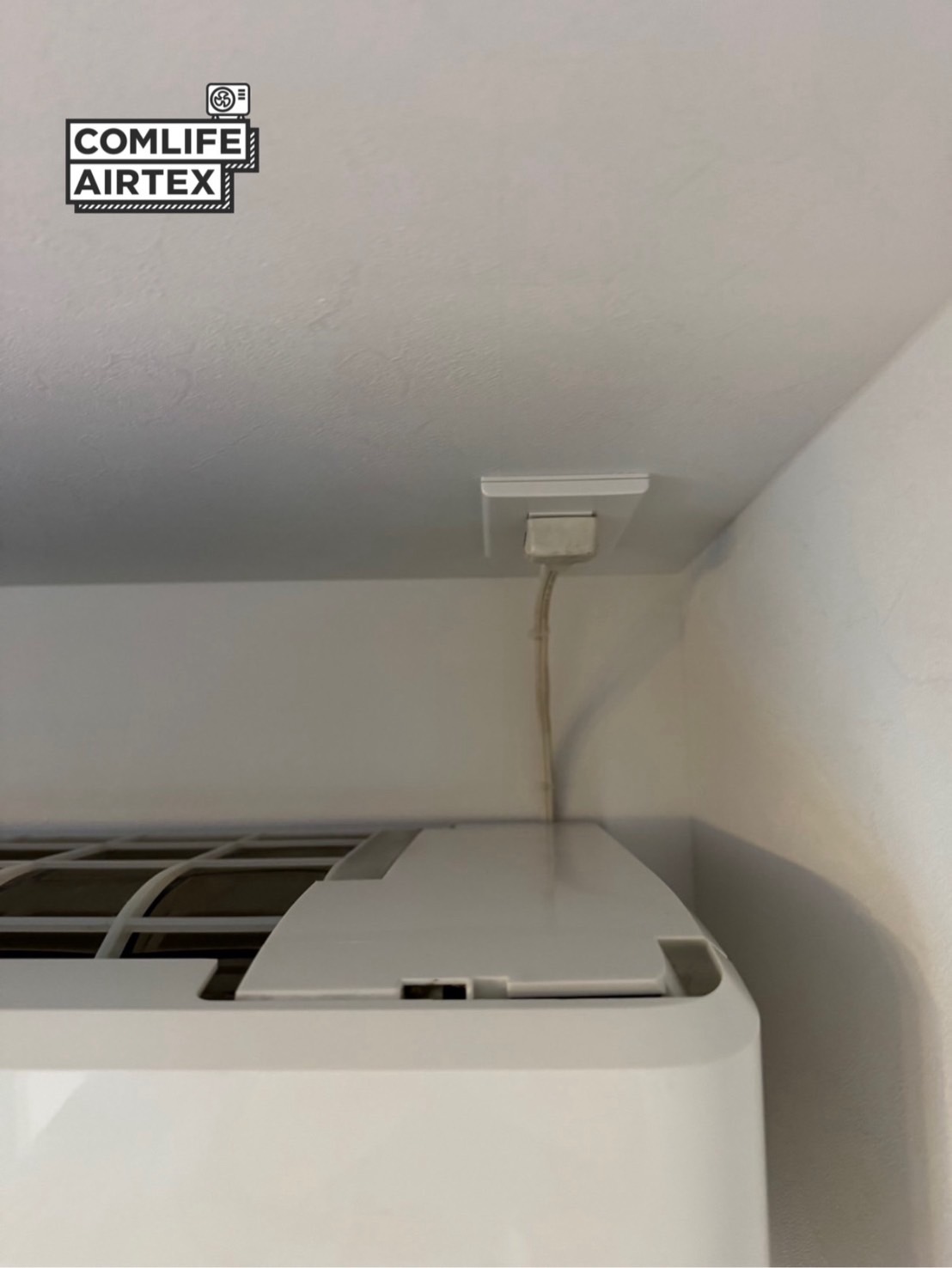 Works 施工事例 2026年1月19日 移設 Panasonic 2.2kw 移設工事👨🏻🔧 新規穴あけ→室外カバーを取付させていただきました😊 コンセント類もこだわってすっきり仕上げました🙆 事例紹介一覧